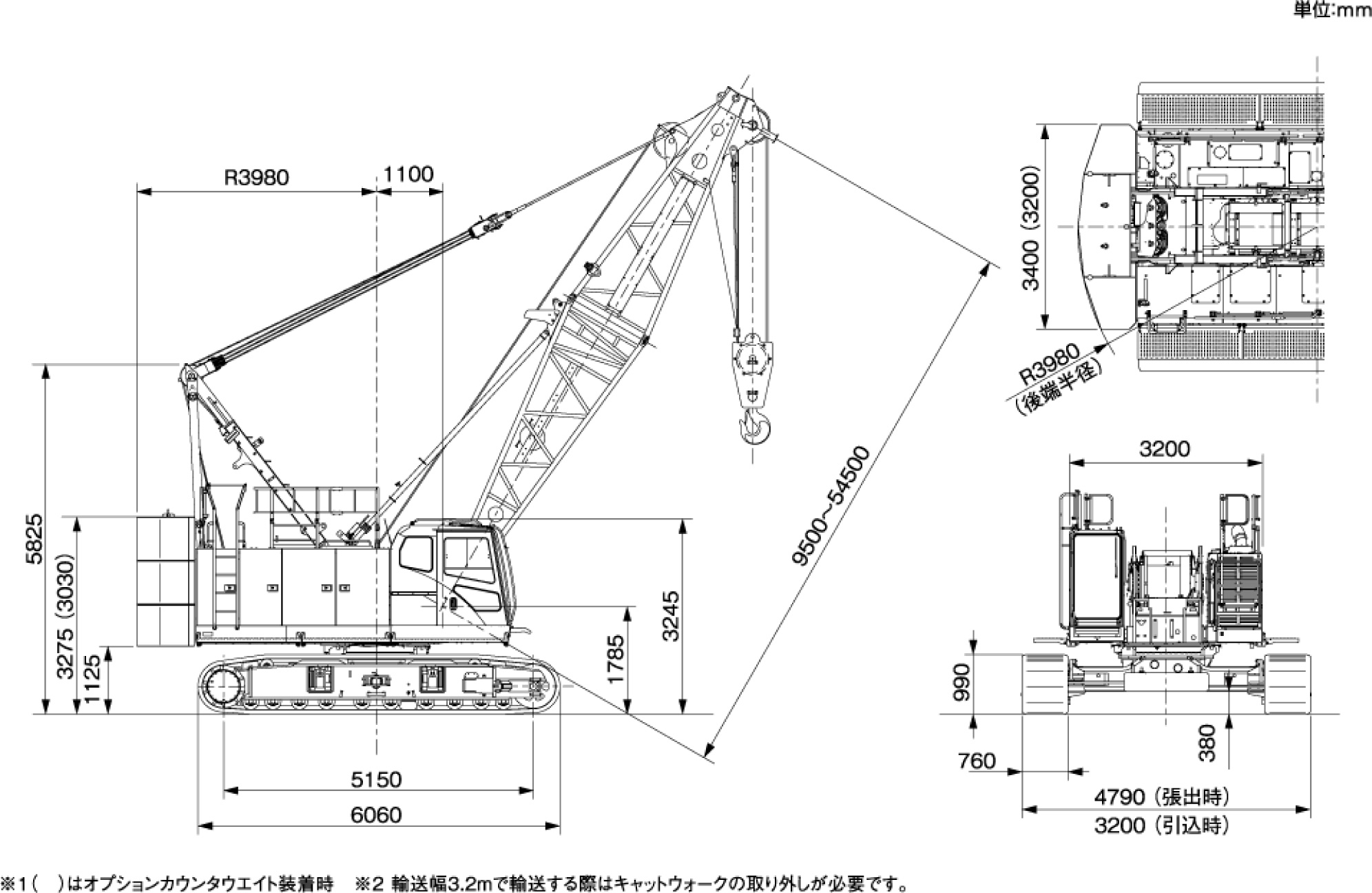 | ブーム+クレーンジブ最長 | 45.5+18.0 m |