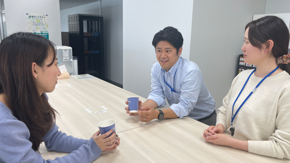 ランチタイムは、外食や会議室でのグループランチ、自席での食事など、自由なスタイルで過ごせます。休憩スペースには電子レンジやコーヒーマシンを完備し、コーヒーを片手に気軽な会話が生まれる場所です。部署を超えた交流やちょっとした世間話を楽しみながら、自然にコミュニケーションが深まる環境が整っています。